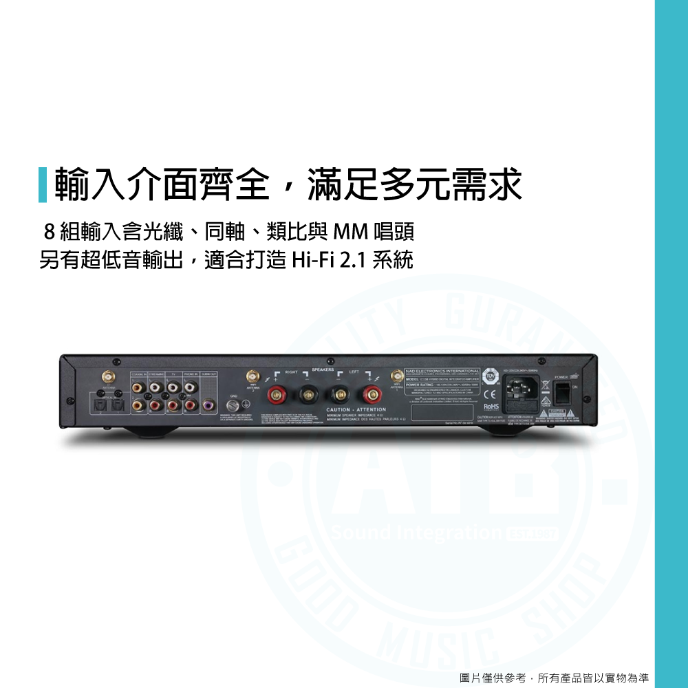 ◆支援 8 組以上輸入,含光纖、同軸、類比、MM 唱頭與藍牙
