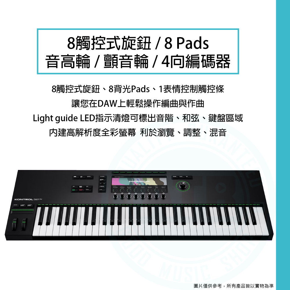 ◆ 具音高輪、顫音輪、表情觸控條、8觸控式旋鈕、8 Pads、四向編碼器、高清大螢幕