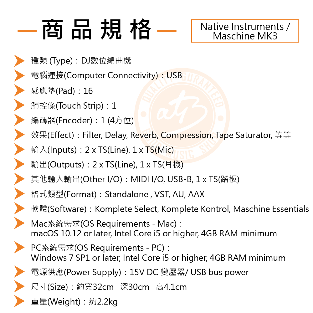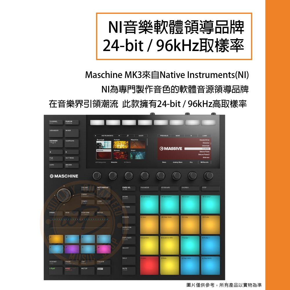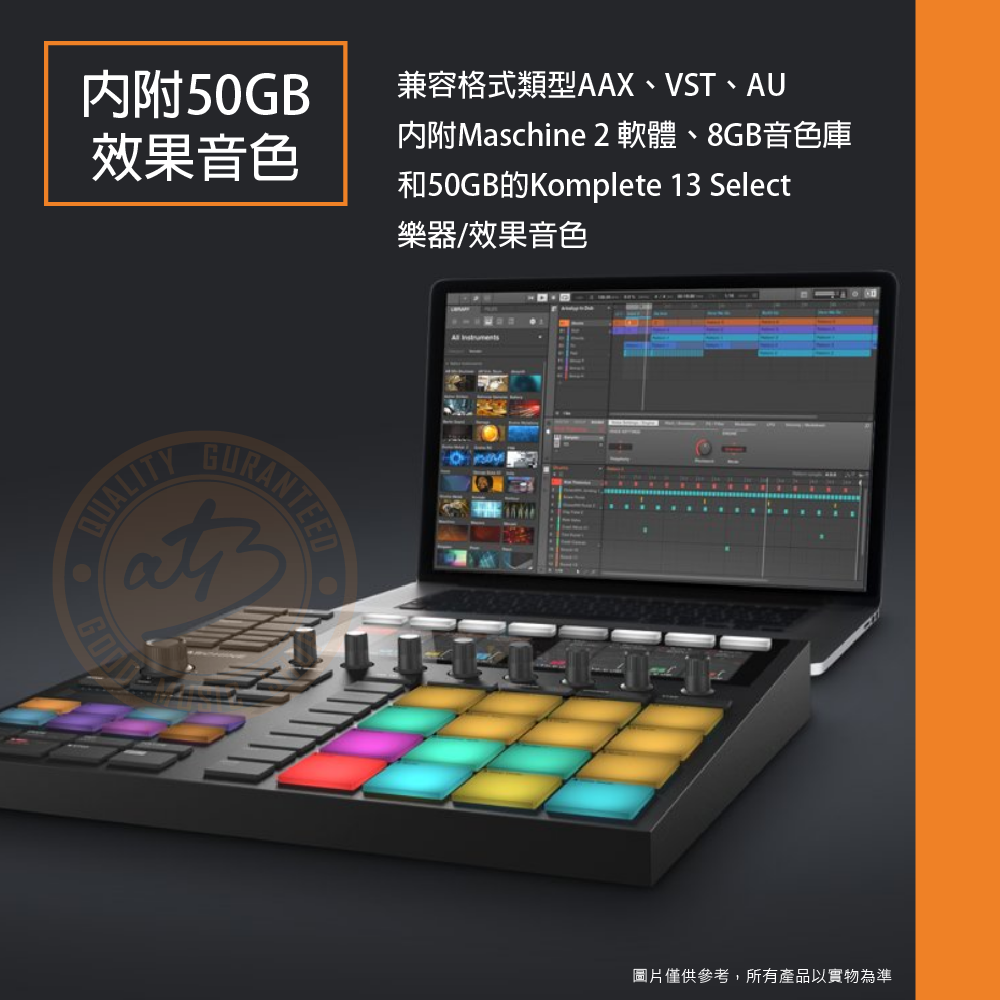 ◆ 內附Maschine 2 軟體、8GB音色庫和50GB的Komplete 13 Select樂器/效果音色,兼容市面大多數DAW
