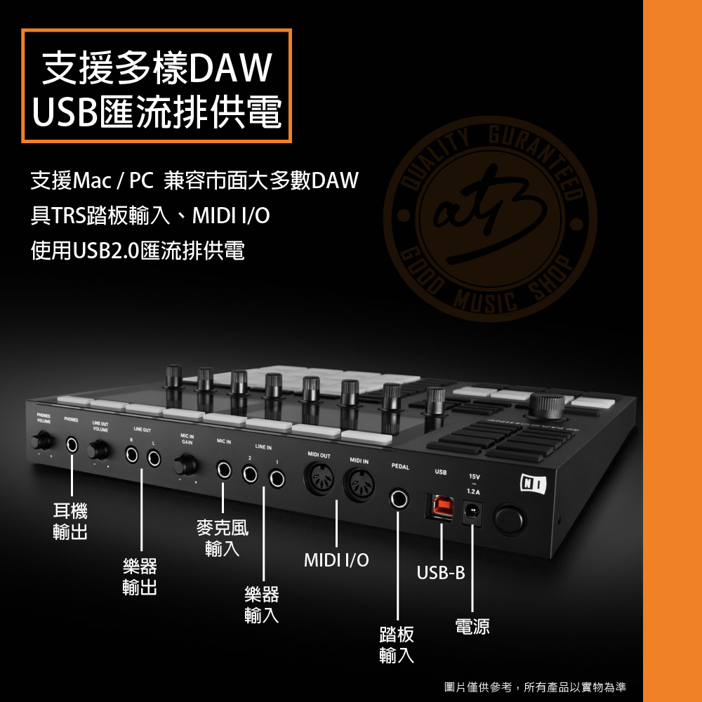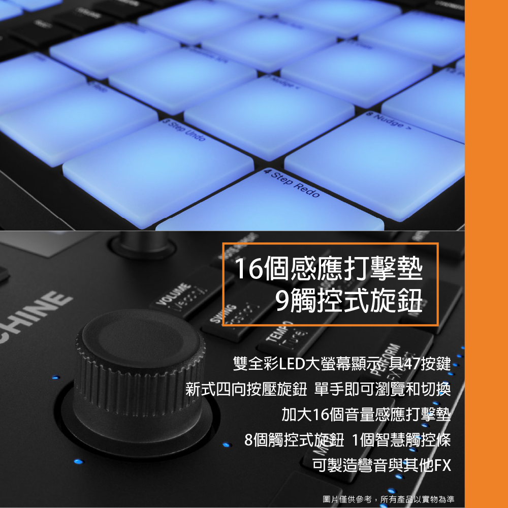 ◆ 具47按鍵、新式四向按壓旋鈕、加大16個音量感應打擊墊、8個觸控式旋鈕、1個智慧觸控條