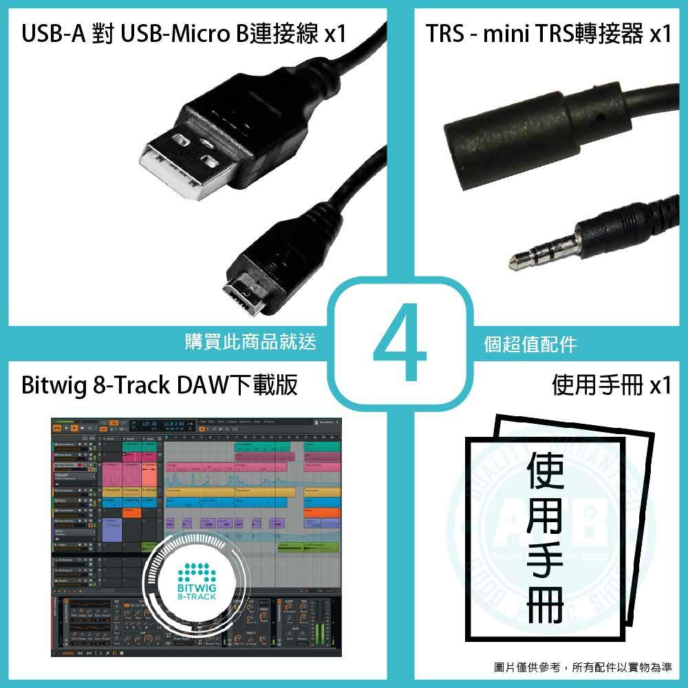 ◆ 具USB、MIDI孔,附Bitwig 8-Track下載版