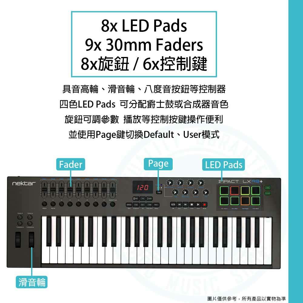◆ 搭載8xLED Pads、9xFaders、8x旋鈕