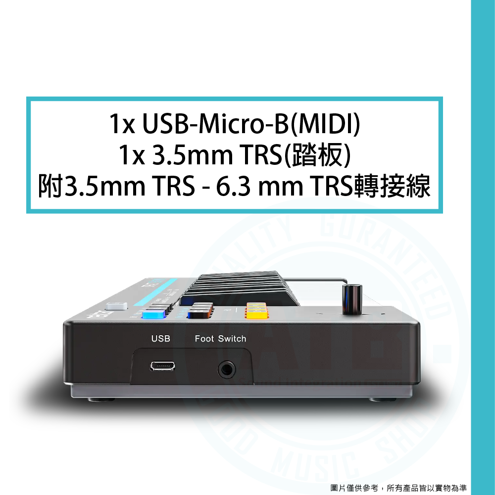 ◆ 採迷你力度感應琴鍵,具3種力度曲線