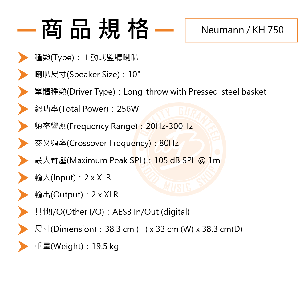 ◆ 可作低音擴充系統,搭配KH 80獲得完美全頻響應