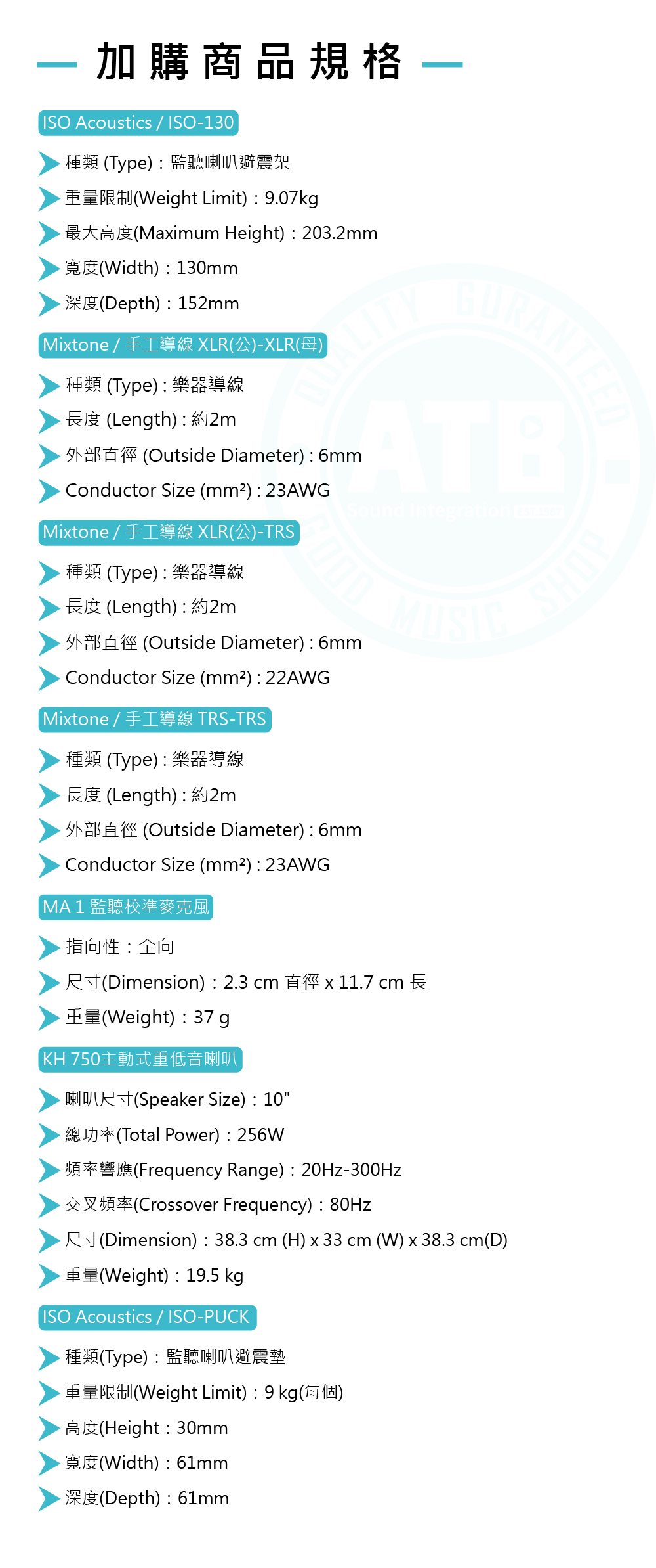 ◆ 與KH 750重低音喇叭搭配,獲得完美全頻響應