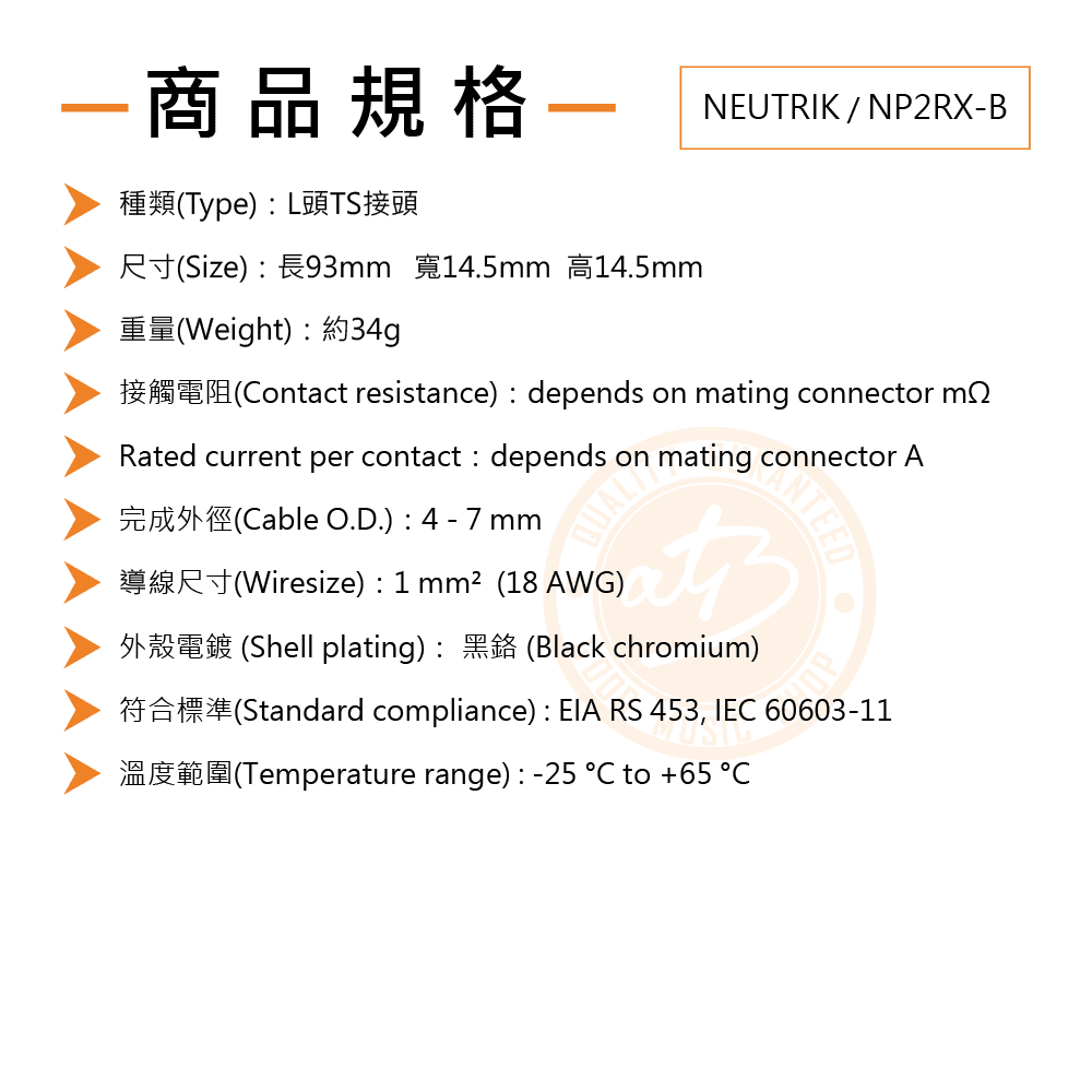 ◆ 歐洲專業接頭大廠Neutrik製造