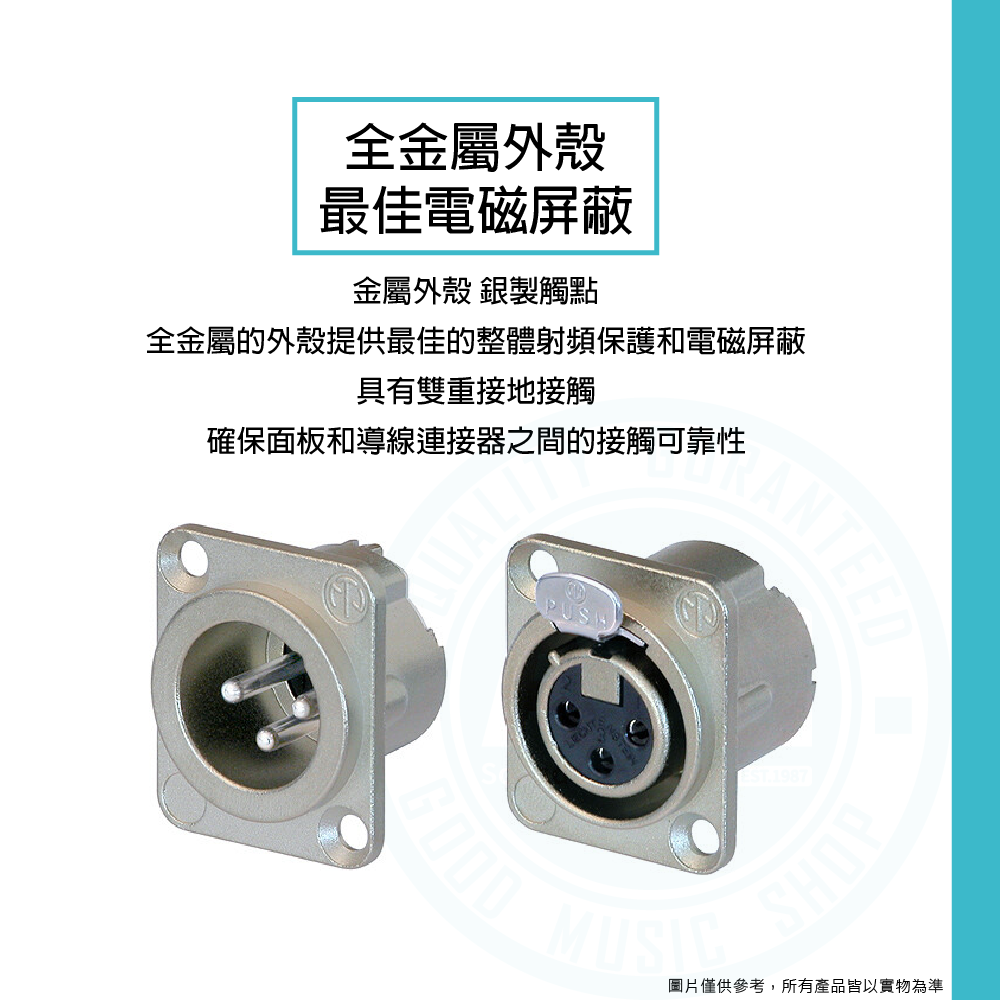 ◆ 金屬外殼鍍銀觸點,通用D型24mm插孔尺寸