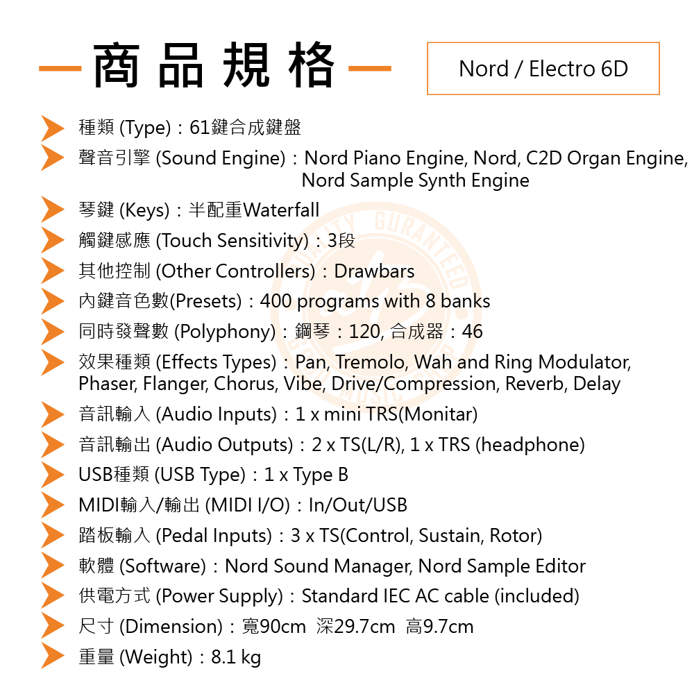 ◆ Nord瑞典頂級鍵盤,具鋼琴 / 合成器 / 管風琴3個音源區塊