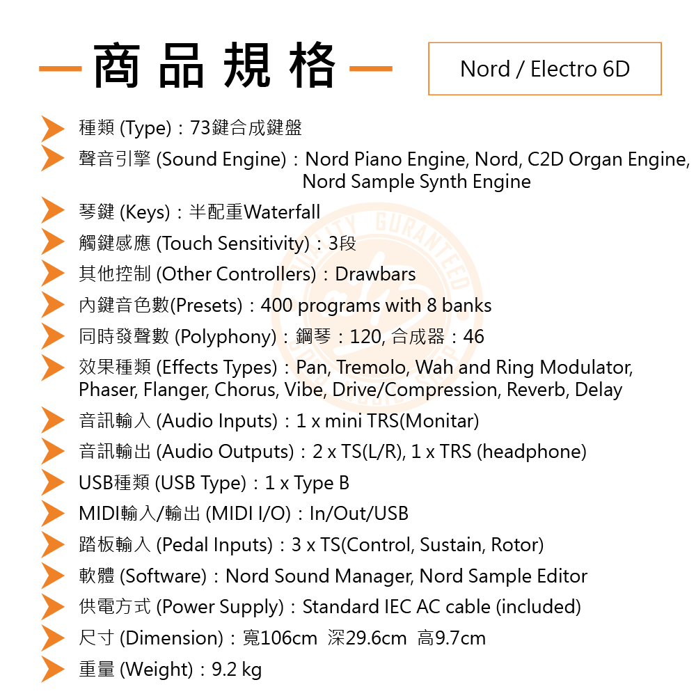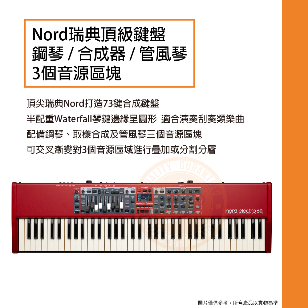 ◆ Nord瑞典頂級鍵盤,具鋼琴 / 合成器 / 管風琴3個音源區塊