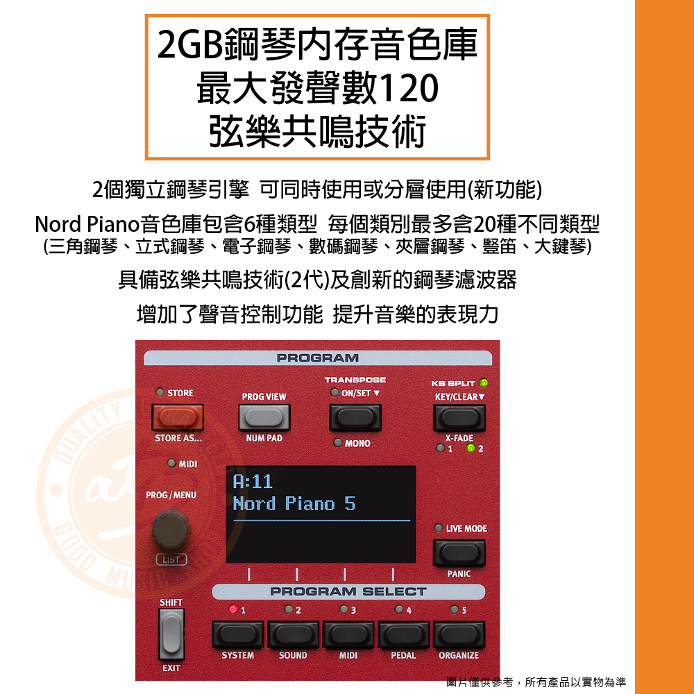 ◆ 2GB鋼琴內存音色庫,最大發聲數120,配備弦樂共鳴技術