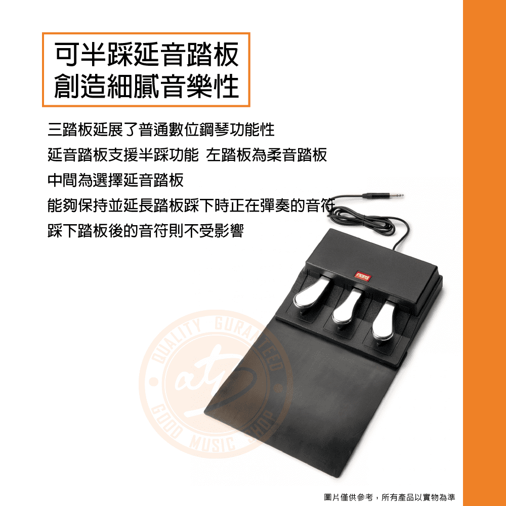 ◆ 延音踏板支援半踩功能,左踏板為柔音踏板