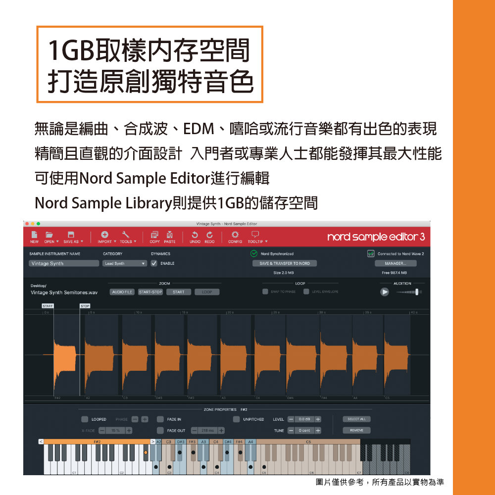 ◆ 每種合成器都能夠無限堆疊音色,Nord Sample Library提供1GB的儲存空間
