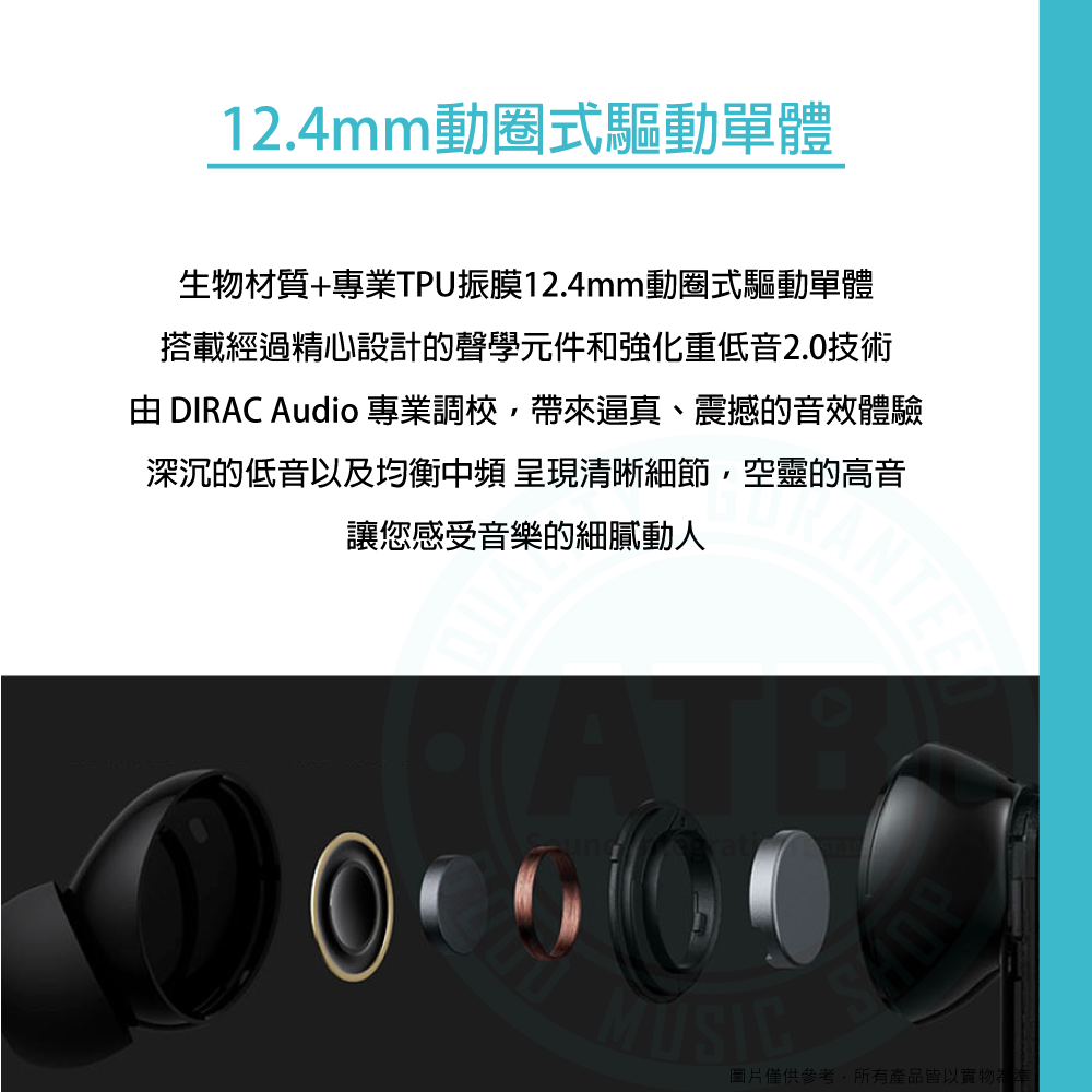 ◆12.4 mm動圈式單體搭載超重低音技術2.0 42 dB 主動降噪
