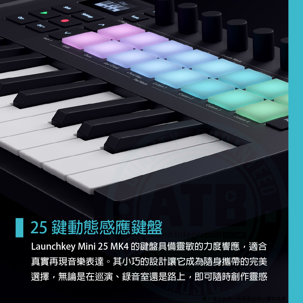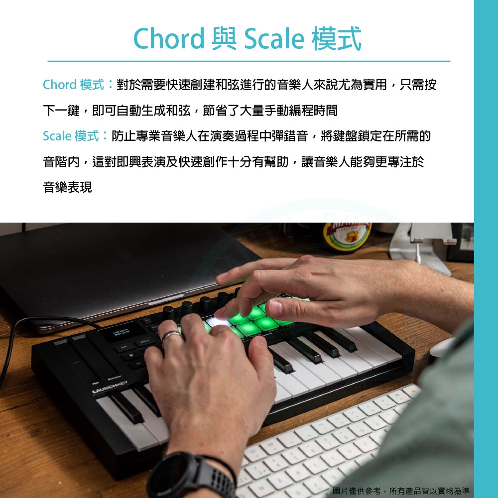 ◆小型的 25 鍵設計,具有速度感應,根據演奏力度輸出不同的音符表現