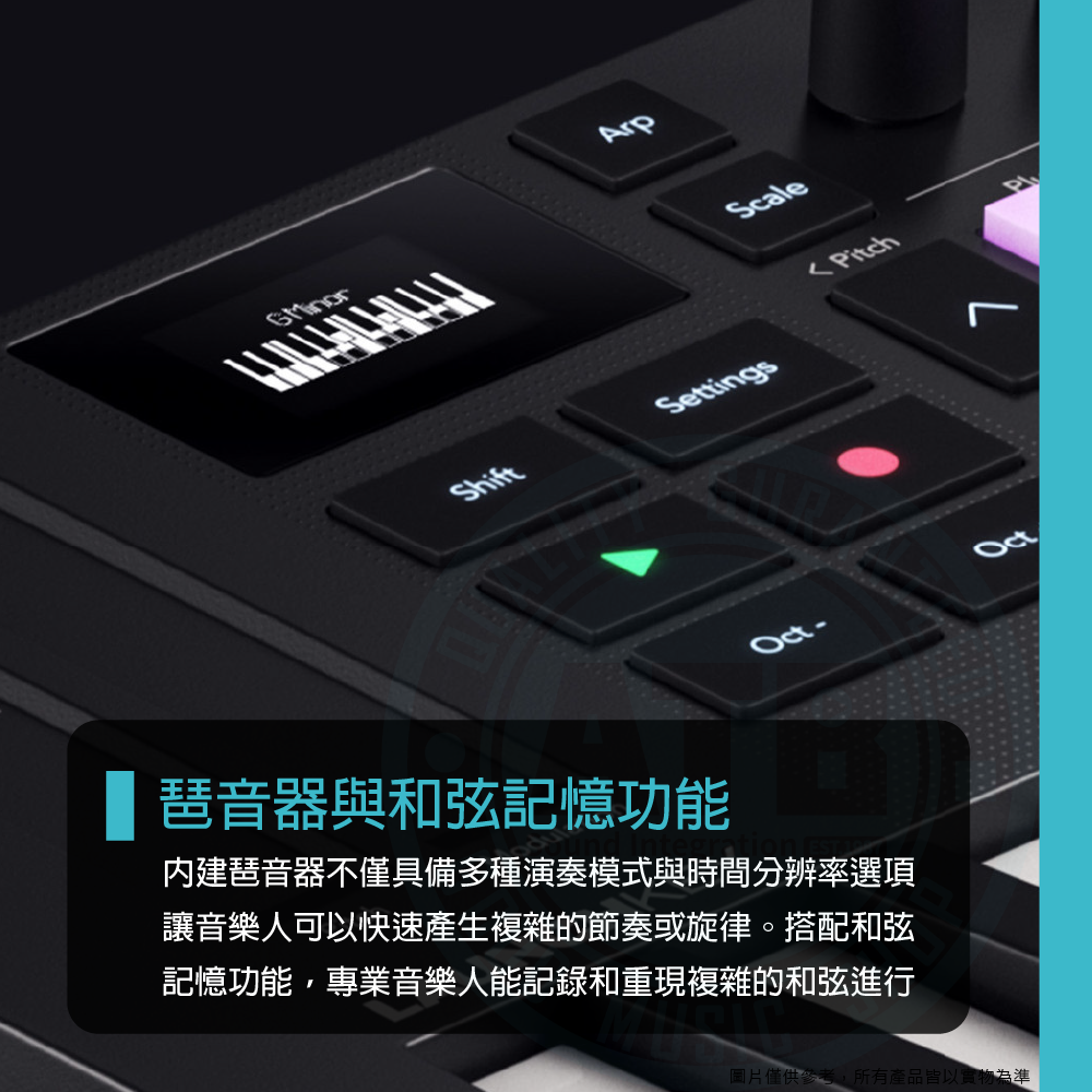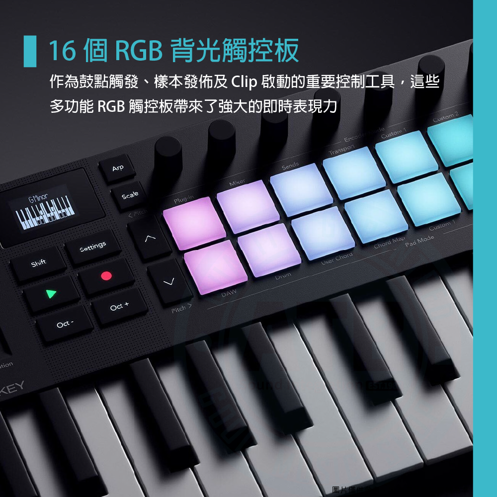 ◆配備 16 個背光 RGB 觸控板,用於觸發鼓聲、樣本和場景