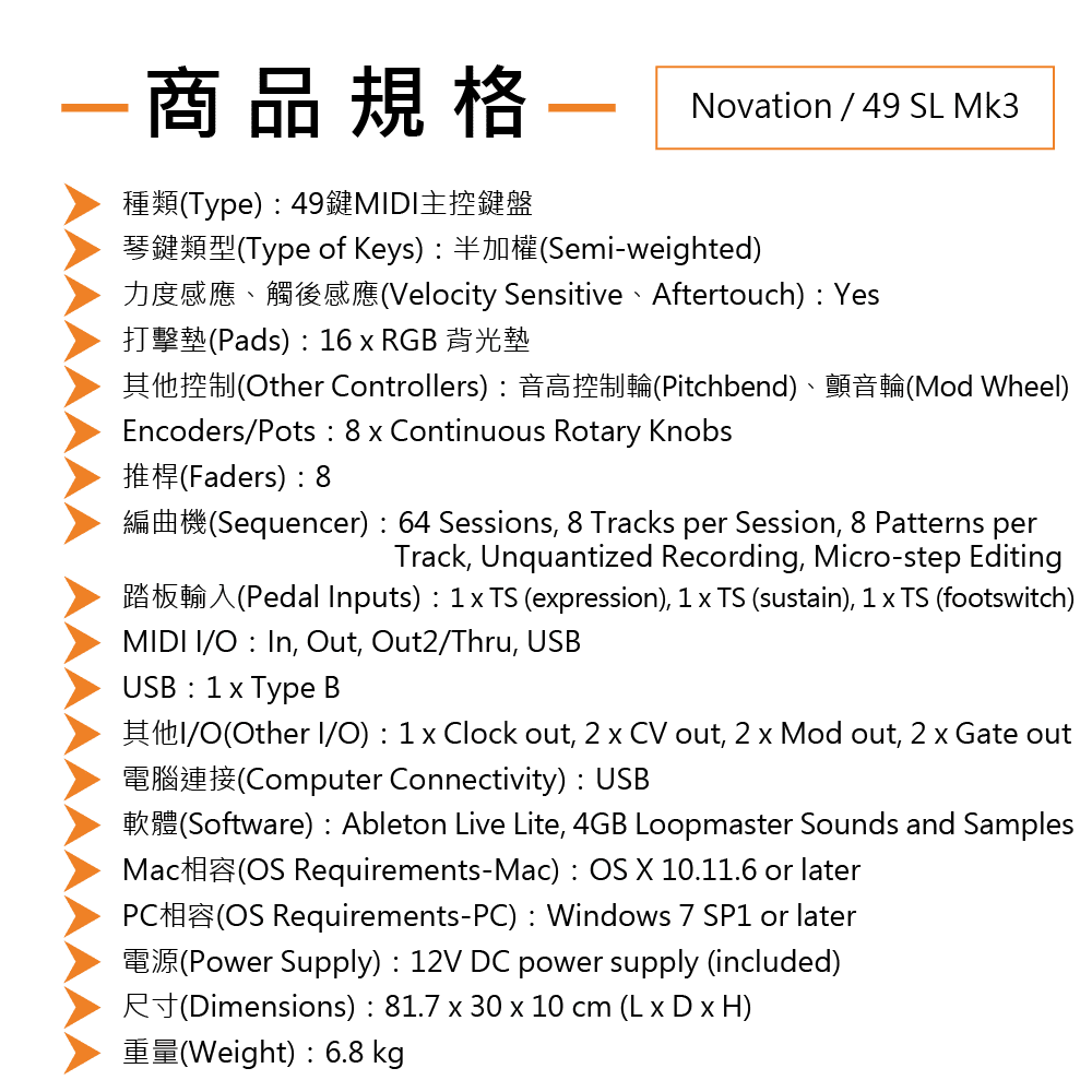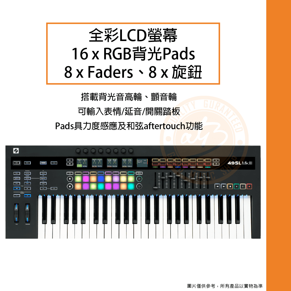 ◆ 49鍵半配重鍵盤(含aftertouch)