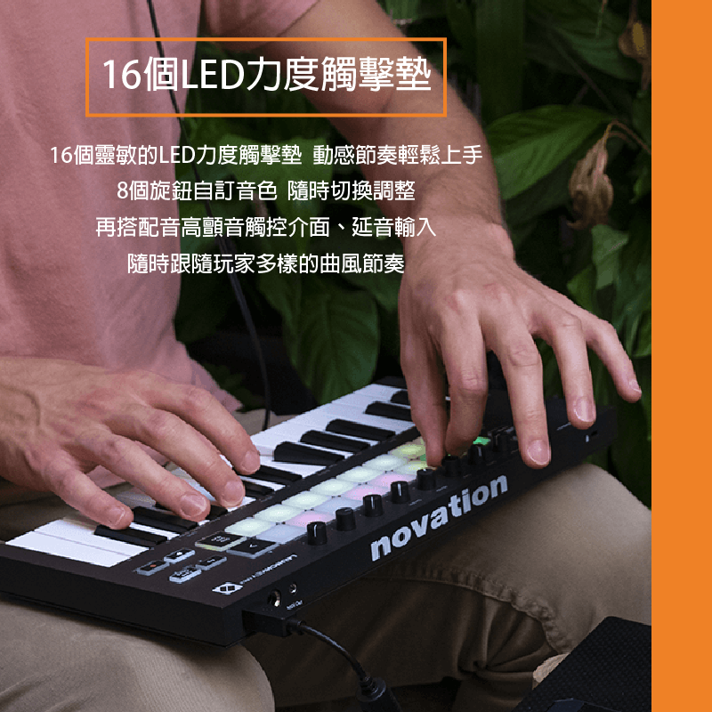 ◆16個LED力度觸擊墊、8個旋鈕自訂音色