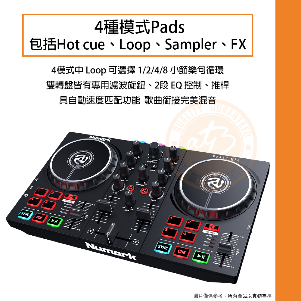 ◆ 4種模式Pads:包括Hot cue、Loop、Sampler、FX