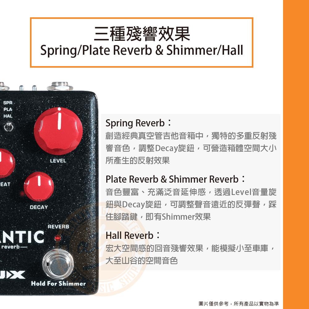 ◆三種殘響效果:Spring/Plate and Shimmer/Hall