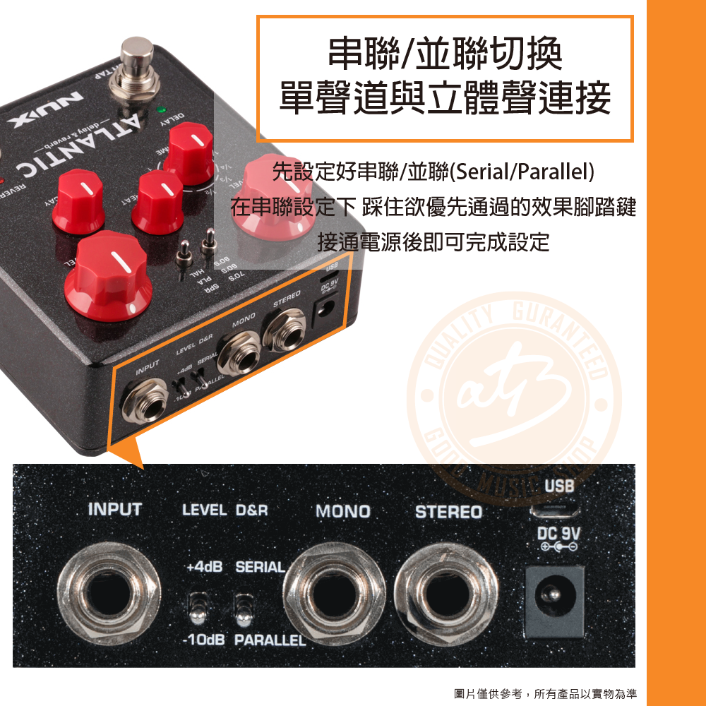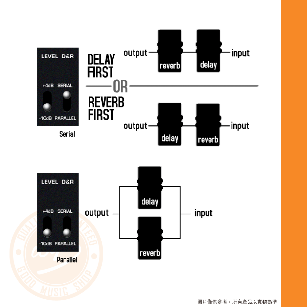 ◆可設定串聯:Reverb-Delay或Delay-Reverb 或並聯模式