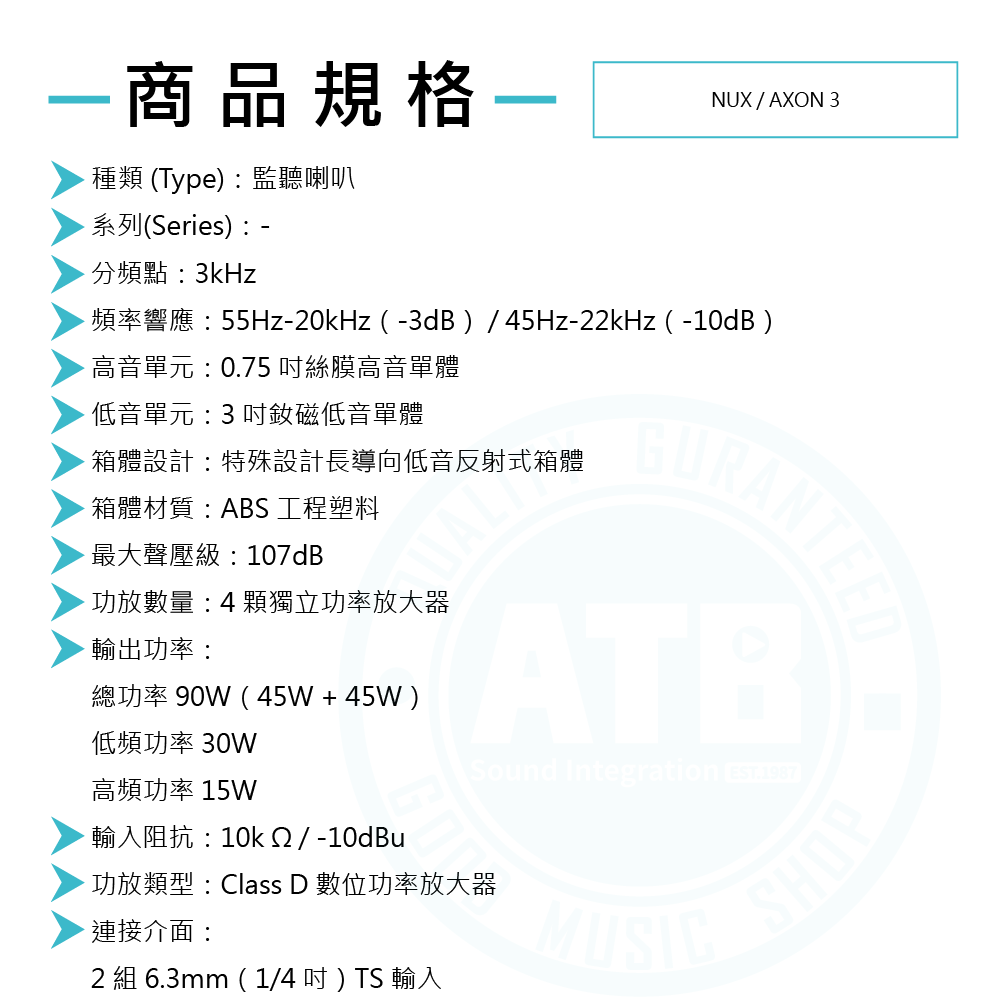 ◆ NUX AXON 3採用正向雙功放驅動兩分頻設計