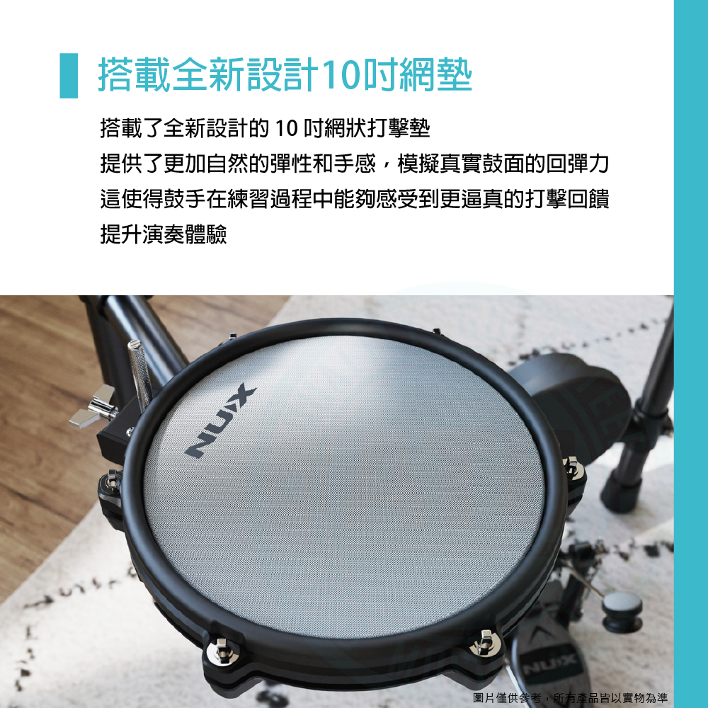 ◆搭載了全新設計的 10 吋網狀打擊墊自然的彈性和手感