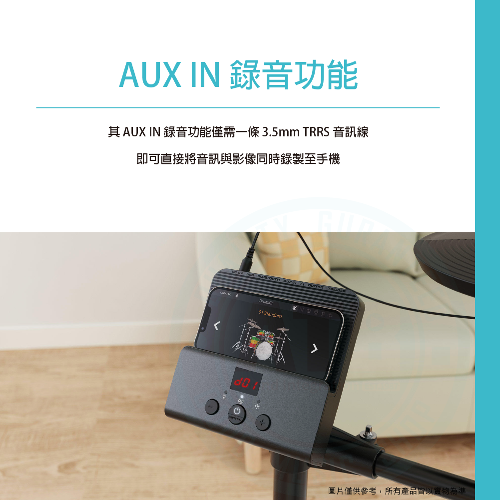 ◆ 雙區域感應技術 鼓面與鼓邊可獨立觸發音色
