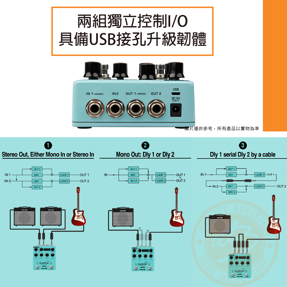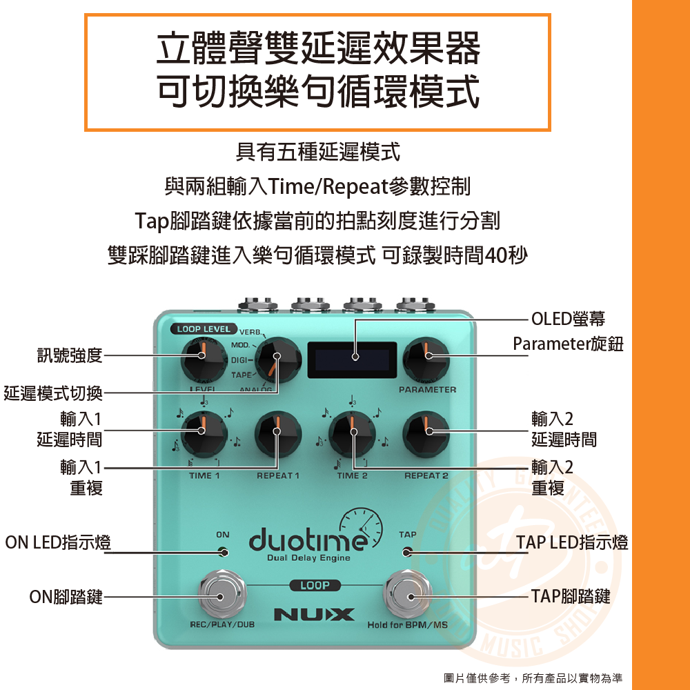 ◆立體聲雙延遲效果獨立控制,可切換樂句循環模式