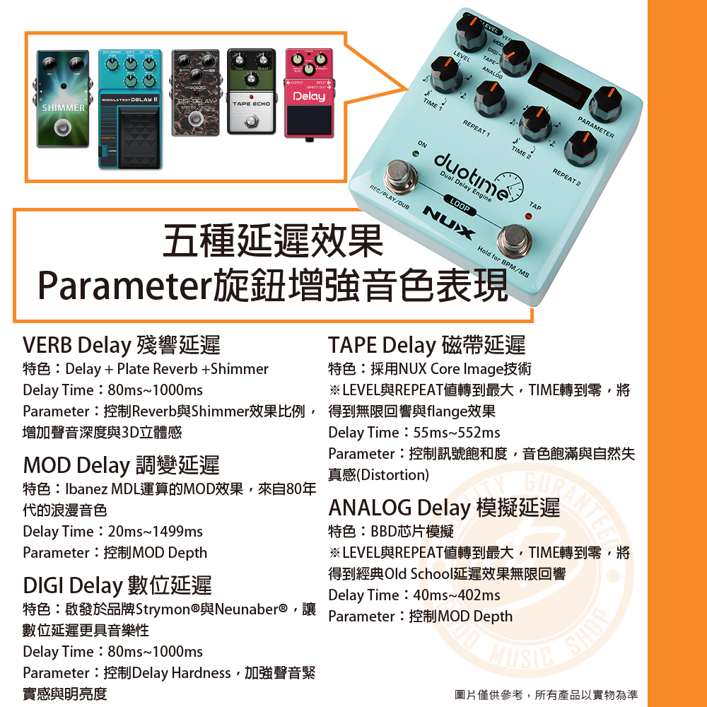 ◆五種延遲效果:Verb/MOD/DIGI/TAPE/ANALOG