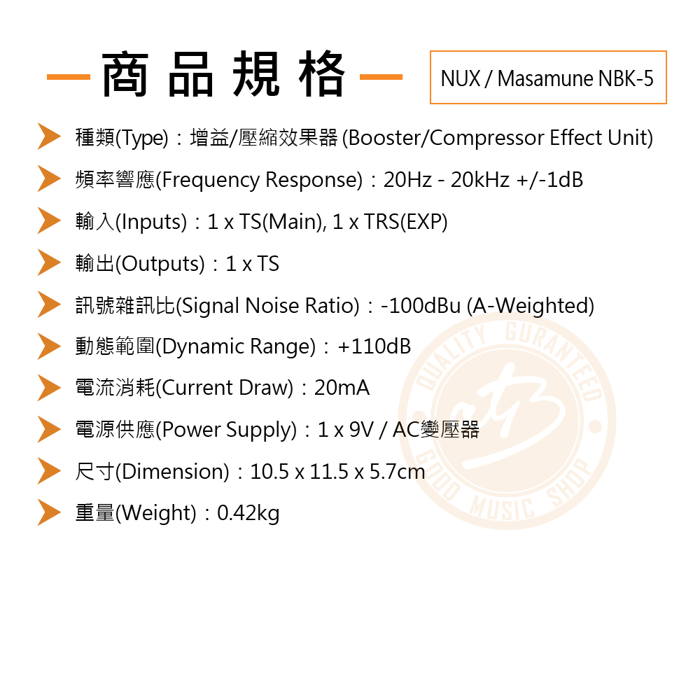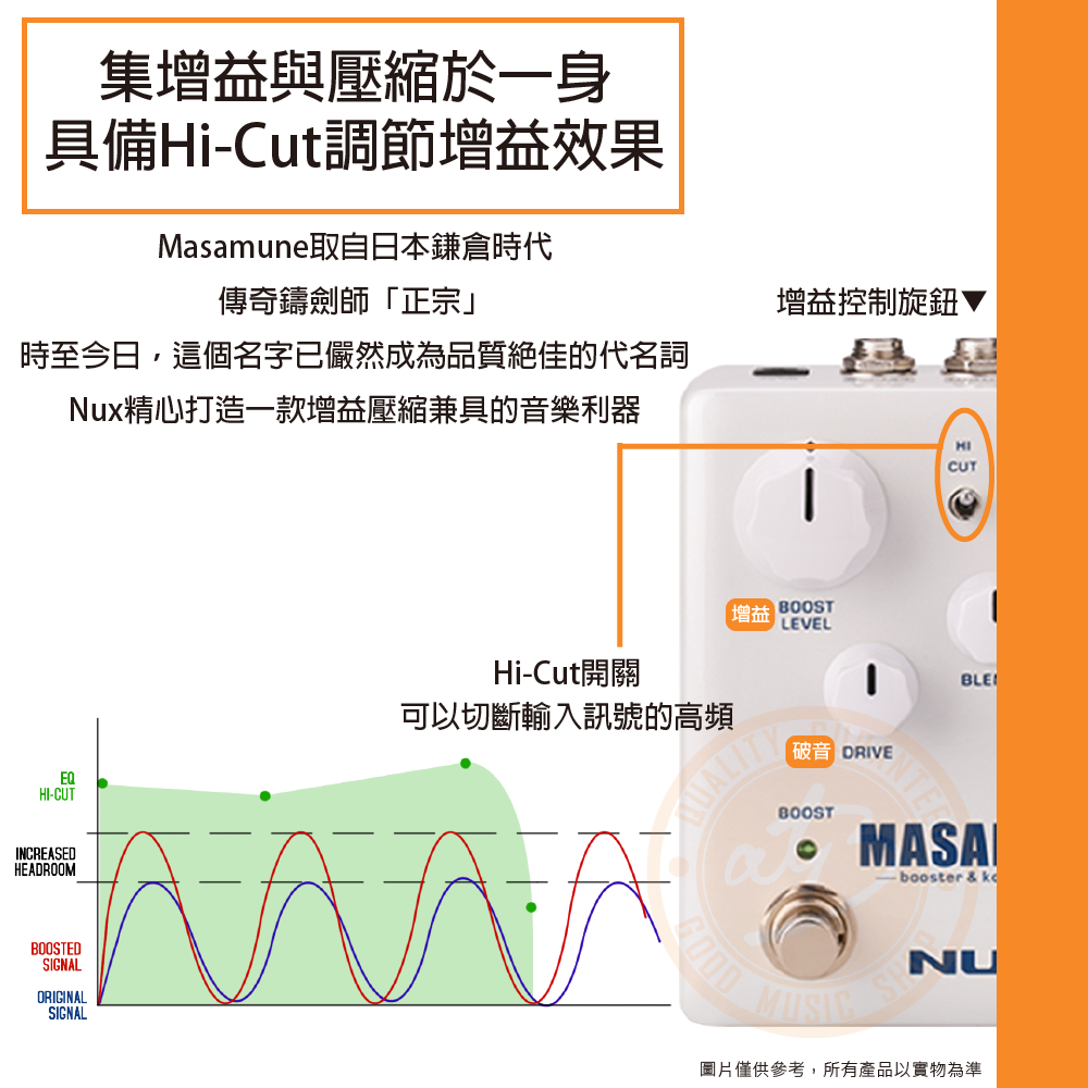 ◆增益控制旋鈕:Boost/Drive,具有Hi-Cut開關,消除尖銳高頻