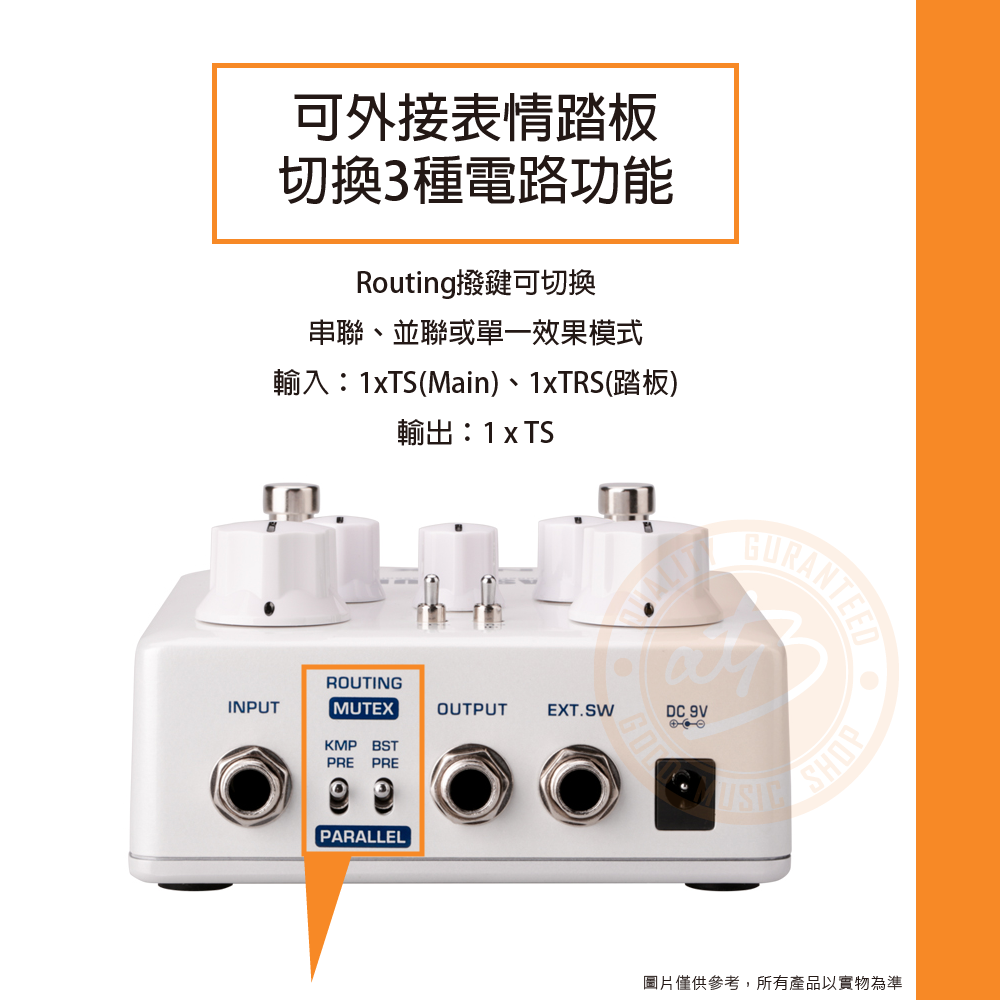 ◆單聲道輸入輸出,可外接表情或平衡式立體聲切換踏板