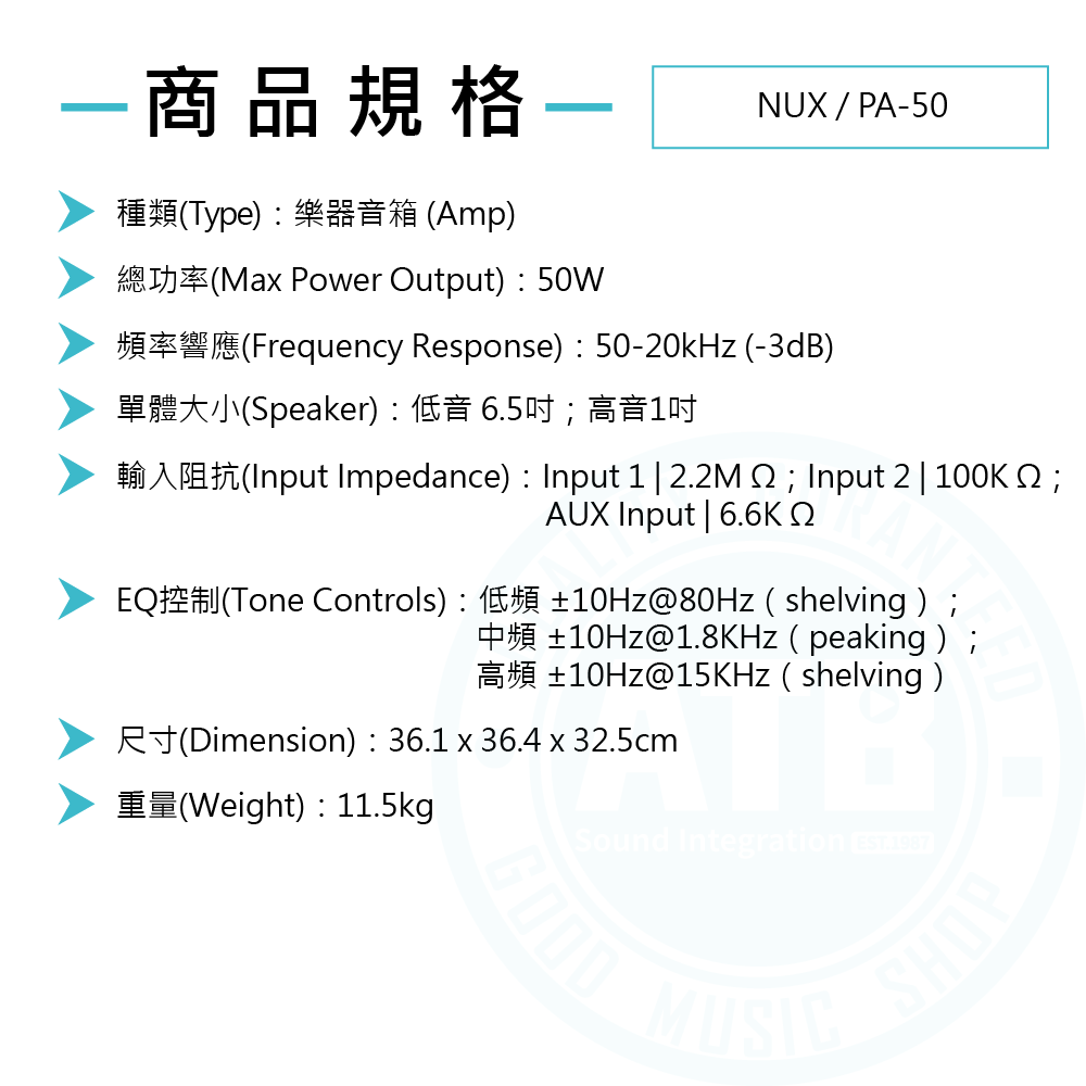 ◆50W/6.5吋便攜監聽音箱,具備樂器與麥克風雙通道