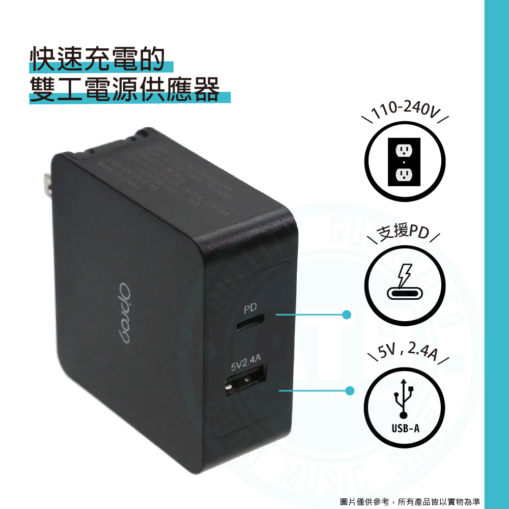 ◆ 支援PD3.0+ USB 2.4A快速充電頭