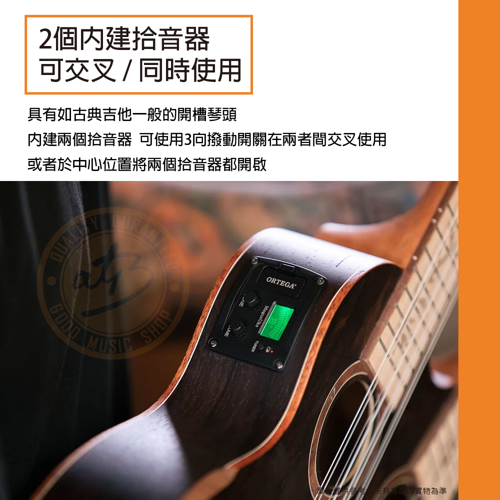 ◆ 內建兩個拾音器,可使用3向撥動開關在兩者間交叉使用或者於中心位置將兩個拾音器都開啟