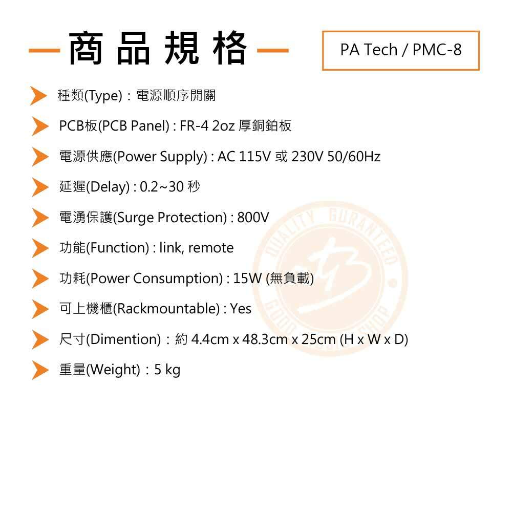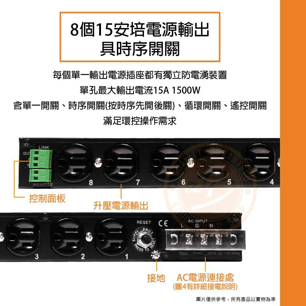 ◆ 8個15安培電源輸出,具時序開關,先開後關