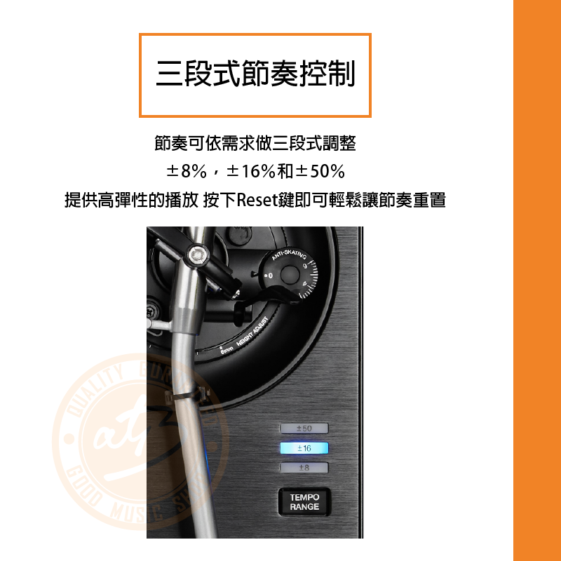 ◆具三段式節奏控(±8%,±16%和±50%)及重置鈕