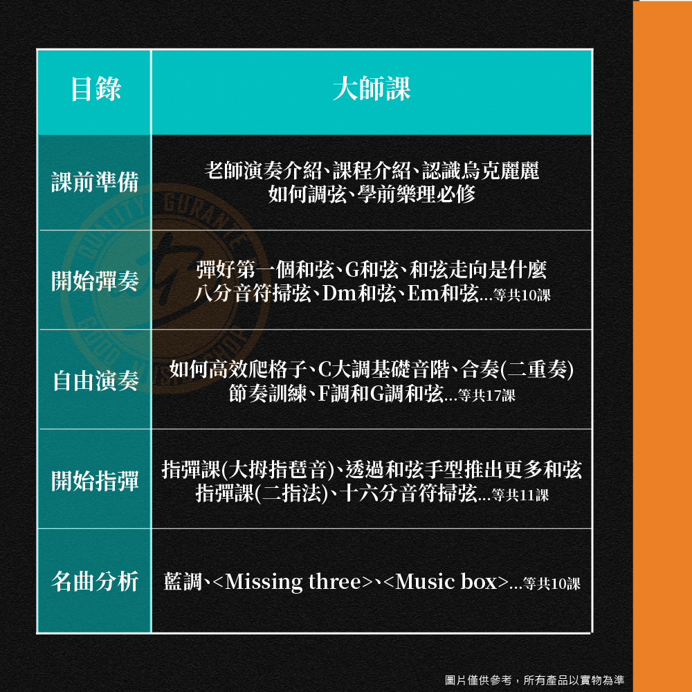 ◆ 可選親子課、彈唱入門、進階、專業大師、全套課程,影片可永久觀看