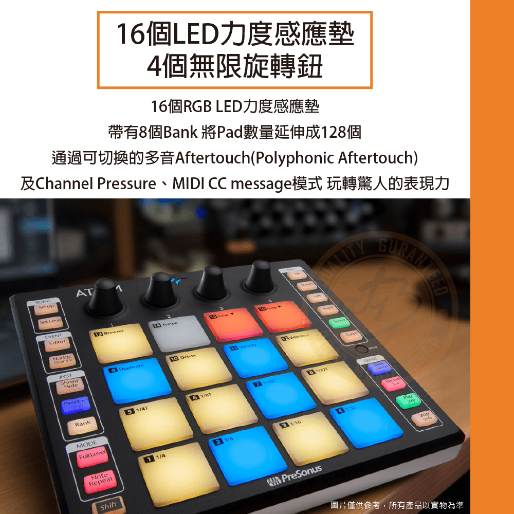 ◆ 搭載16個RGB感應墊、4個可編碼旋鈕