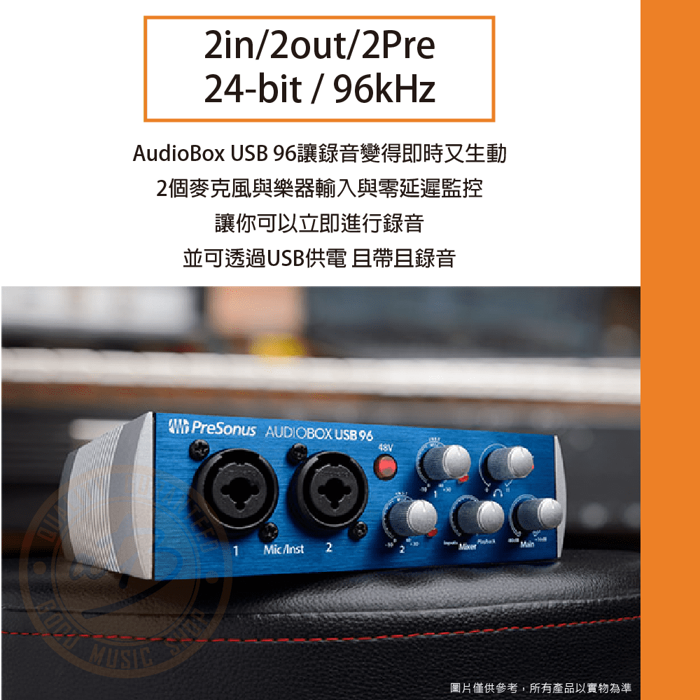 ◆ USB錄音介面,2in/2out/2Pre,24-bit/96kHz