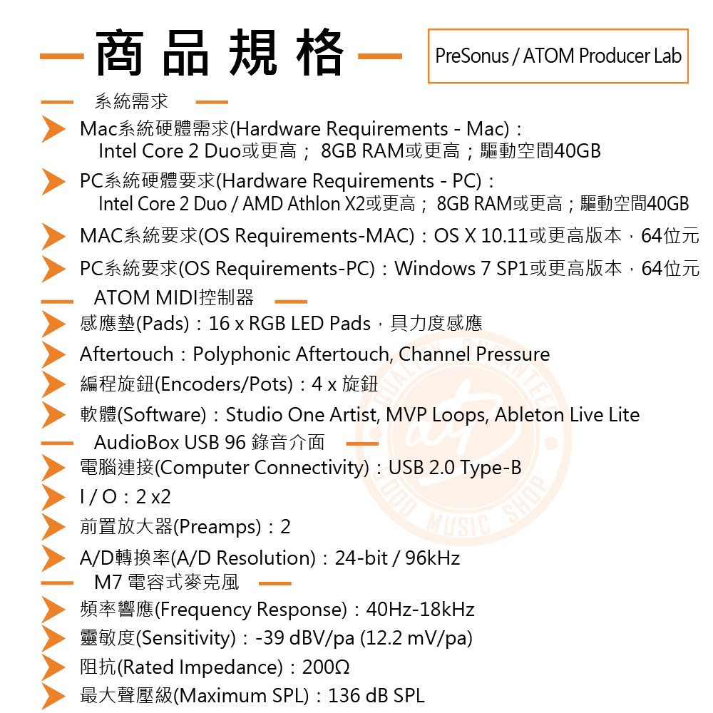 ◆ 附Studio One Artist正版軟體、原廠電容式麥克風