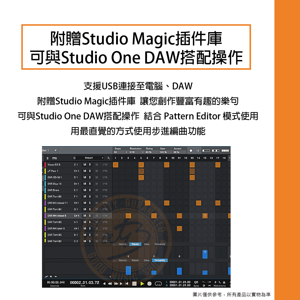 ◆ 支援USB連接至電腦、DAW,附贈Studio Magic插件庫,讓您創作豐富有趣的樂句