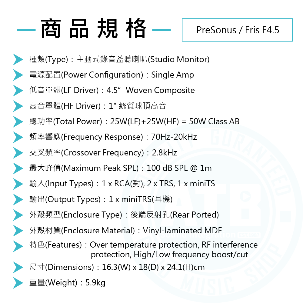 ◆ 25W 4.5吋低音單體,1吋球頂高音單體