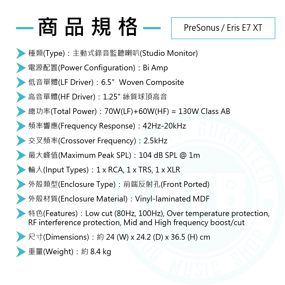 ◆ 頻率響應 42Hz-20kHz,104dB 最大聲壓級