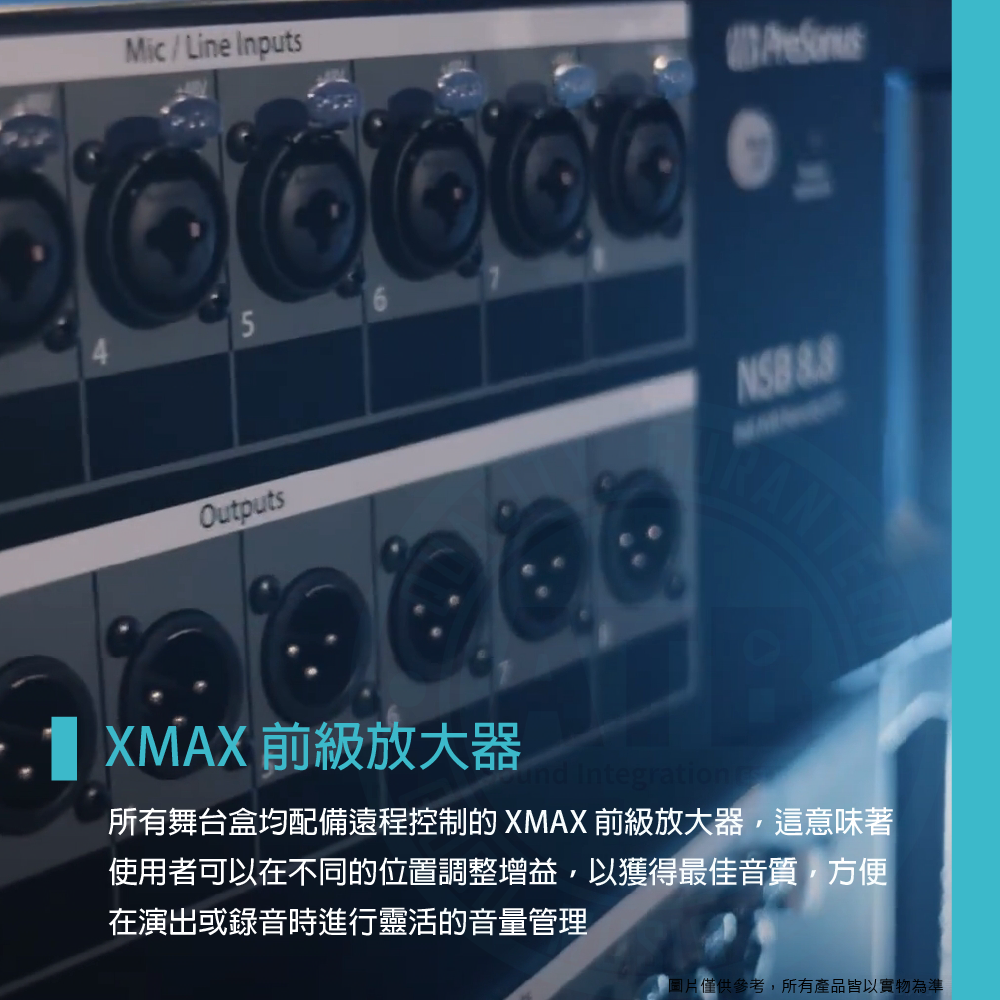 ◆配備遠程控制的 XMAX 前級放大器,並支持增益補償