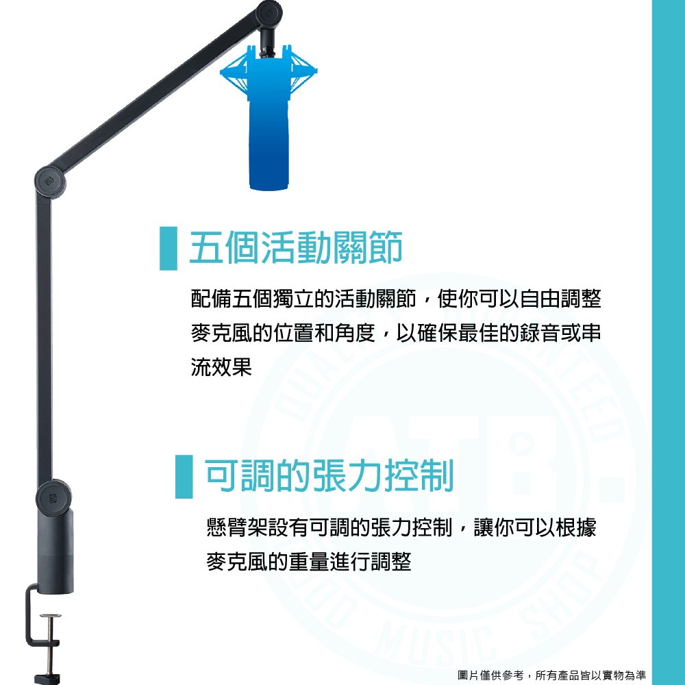 ◆五個活動關節提供靈活的麥克風位置調整,確保最佳錄音角度