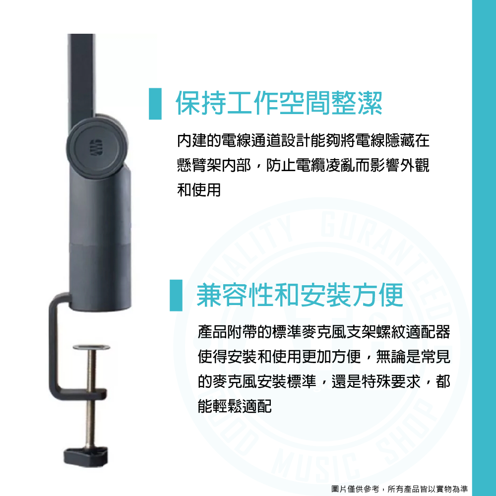 ◆可調張力控制適應不同重量的麥克風,保持穩定支撐
