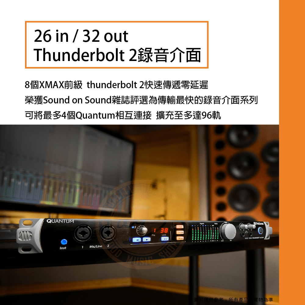 ◆ thunderbolt 2快速傳遞零延遲,可將最多4個Quantum相互連接,擴充至多達96軌
