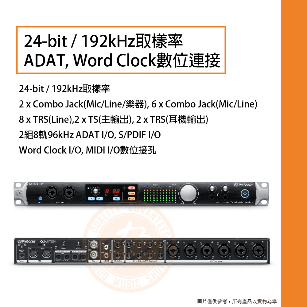 ◆ 24-bit / 192kHz取樣率,支援ADAT、Word Clock數位連接