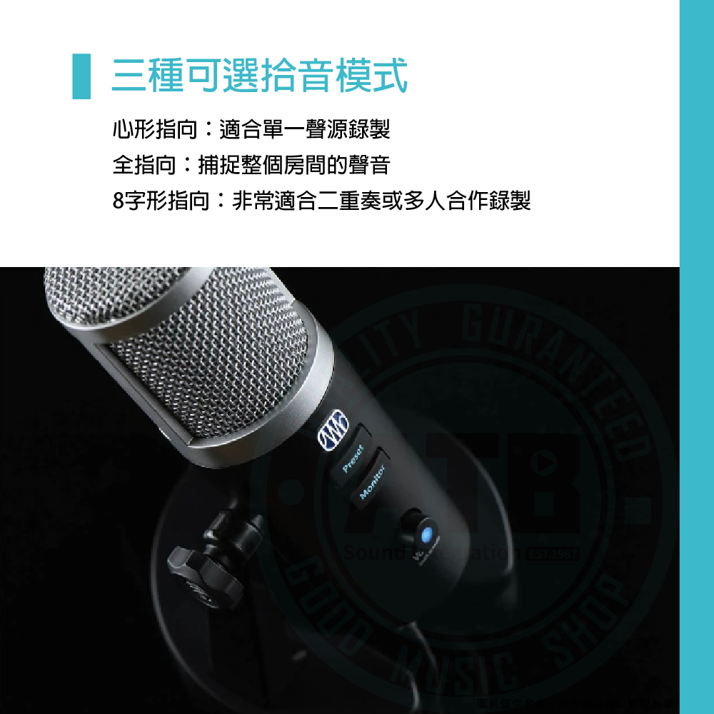 ◆一支具備 三種可選收音模式 的大振膜電容麥克風
