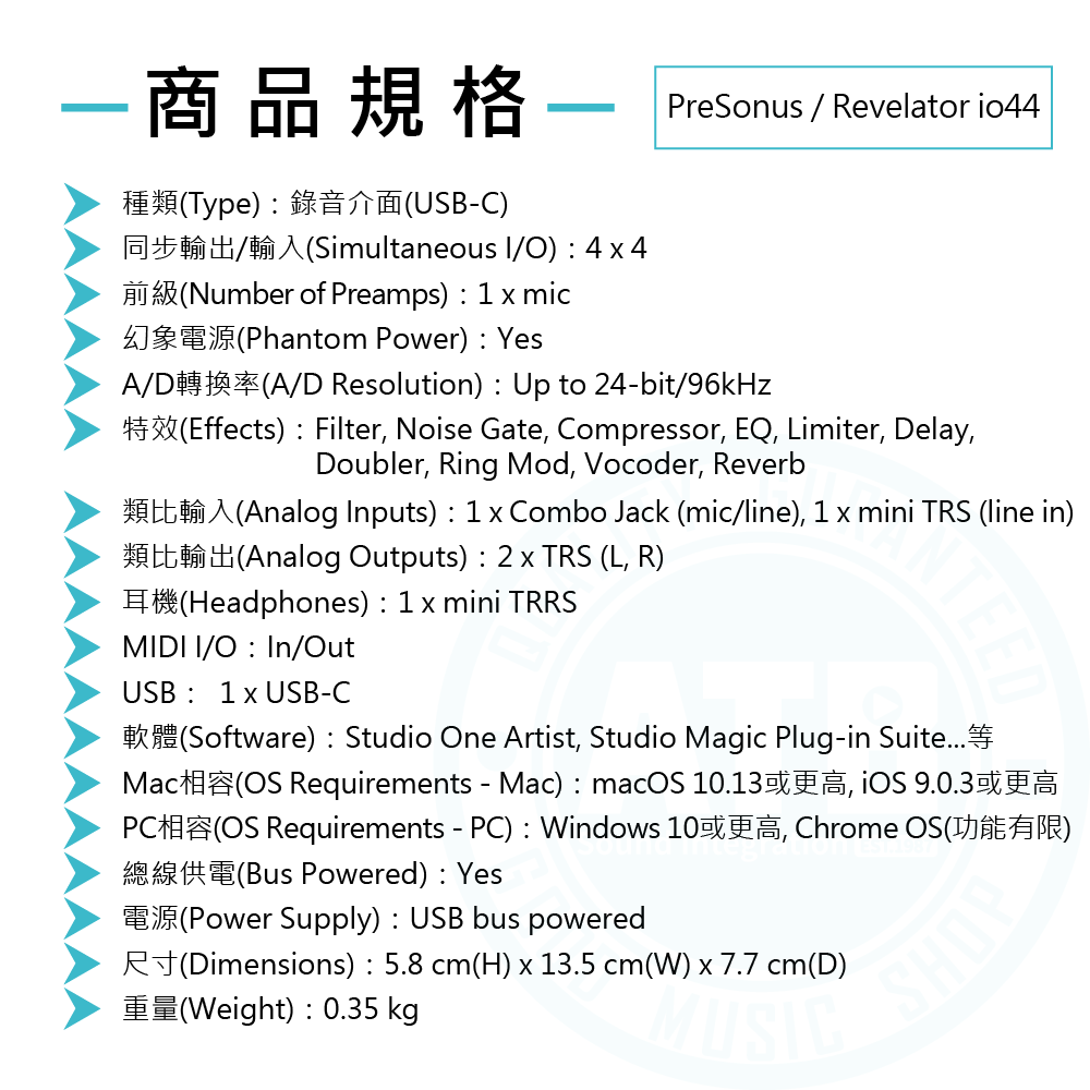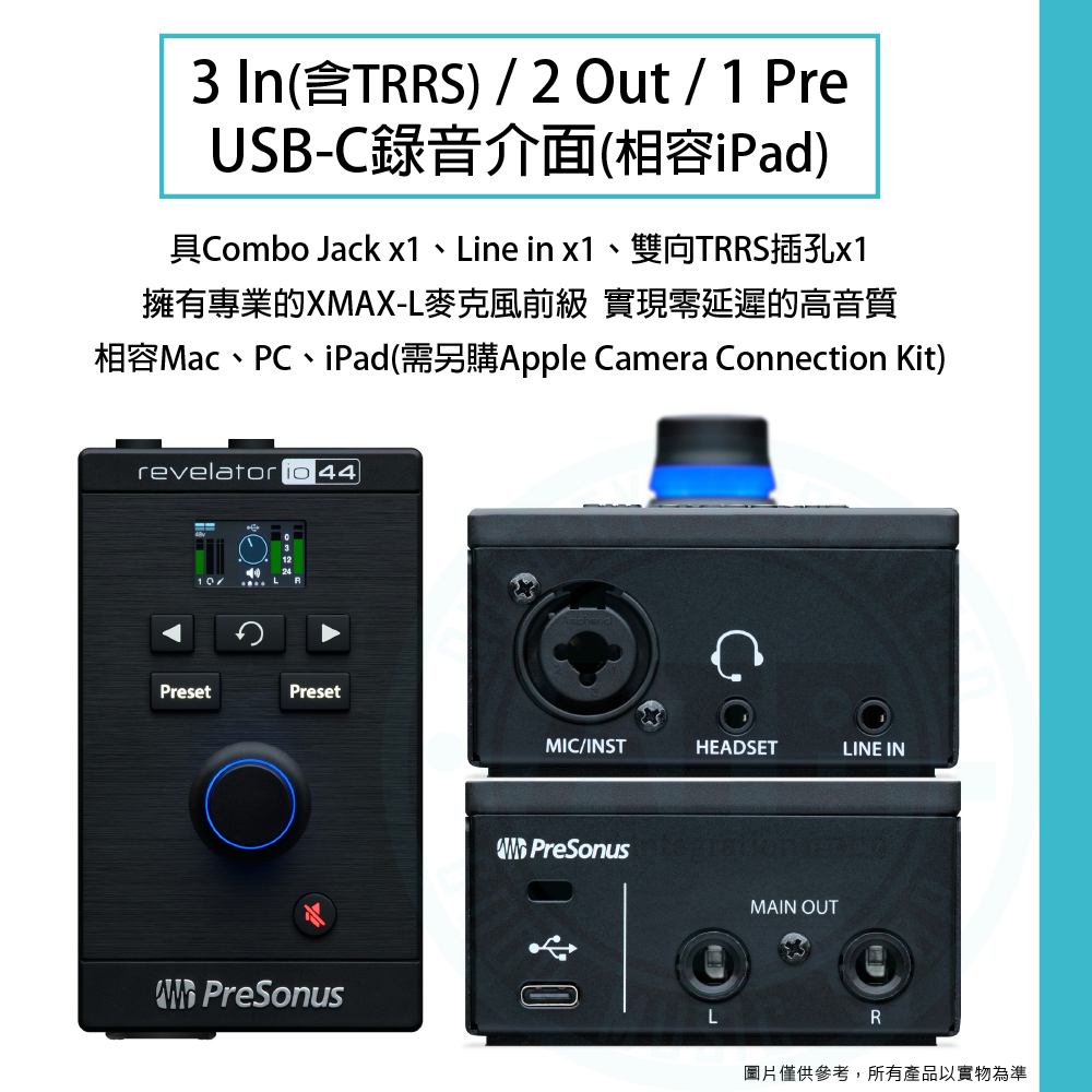 ◆ 3 In(含TRRS) / 2 Out / 1 Pre,USB-C錄音介面(相容iPad)